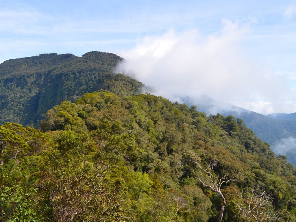 Pemandangan dari puncak biasanya tertutup kabut, tetapi suasana hutan perawan membuat pengalaman sangat eksotis.