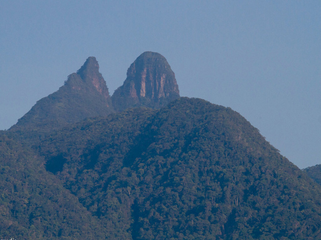 Bentuk tiga puncak granit yang ikonik dan panorama pulau-pulau di sekitarnya.
